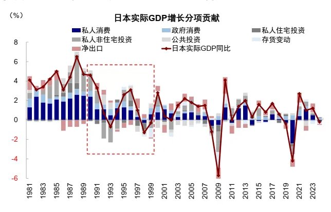 从更长的时间维度看,日股在1989年泡沫破裂的十年后,之所以能够出现三轮“牛市”、但每次都无法打破“天花板”而陷入箱体震荡的怪圈,根本原因还是在于:靠政策刺激和产业趋势的确可以推动阶段性上涨,但当这些动力逐步耗尽且市场情绪和估值也都到高位后,结构性问题没有彻底解决,基本面难以“接棒”,拖累就开始再度显现,再叠加如果内外部一些风险事件暴露,更会加大市场的压力。