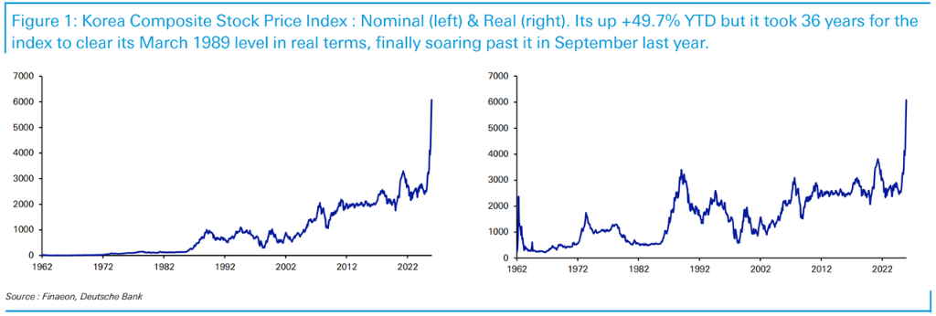 从更长周期来看,韩国股市的这轮修复具有历史意义。德意志银行数据显示,Kospi直到去年9月才真正突破1989年3月的历史高点,距离那个峰值整整过去了36年。