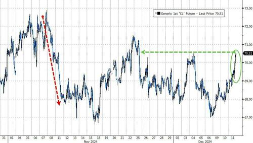 美油:WTI 1月原油期货收涨1.70美元,涨幅将近2.48%,报70.29美元/桶,逼近11月22日收盘位71.24美元。