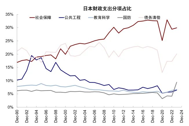 图表22:从财政支出结构上看,1998年后日本财政重心从基建转向民生