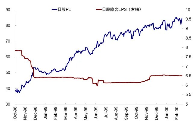 1) 估值扩张是主要贡献,盈利反而回落,期间日股静态PE扩张了106%,而隐含的EPS增速回落了25%。
