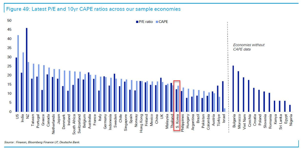 韩国股市长期以来因公司治理问题而承受估值折价——控股股东利益凌驾于普通股东之上,交叉持股结构复杂,董事会问责机制薄弱。这一"韩国折价"使得韩国股票在全球估值排名中长期处于后三分之一区间。